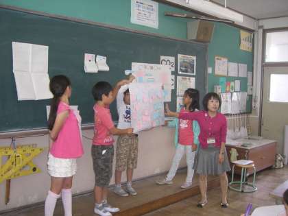 夏休みに入る前、「自分たちは,エコな生活をしているだろうか。」という調査をしました。調査で分かった自分達の課題から、夏休みに「エコな生活」に挑戦することにしました。