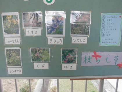 渡り廊下には『秋の七草』の掲示物が貼ってあります。