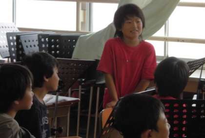 4年生は音楽室で3年生の担任が音楽の指導をしていました。