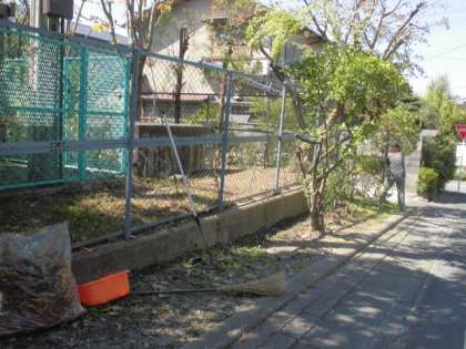 西側フェンス沿いの樹木を伐採したため,今度は,正門周辺や,フェンス外側の樹木の混み具合が目立つようになりました。