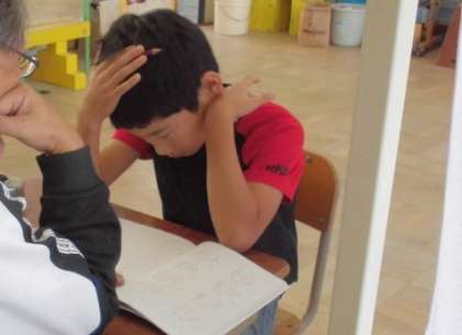 3年生の教室では,算数の学習をしていました。みんなで問題を解いた後,ドリルを使って,同じ種類の問題を解く練習をしていました。習った解き方を活かし,定着させるための学習です。
