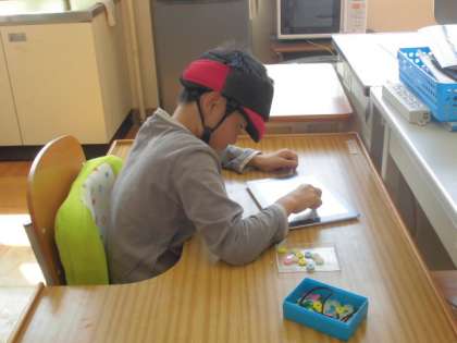 あすなろ学級1組の教室では,今日も算数の計算問題の練習をしていました。自分の課題に応じた問題を繰り返し練習しています。早く正確に計算できるようになることを願って練習を重ねています。