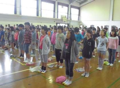 4月からスタートした平成26年度の教育活動も,今日で前半が終了,その区切りとして,朝から体育館で「終業式」を行いました。