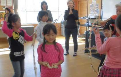 初めて手にする『玉すだれ』の感覚,そして,それを扱って作り出される形に,子どもたちは大喜びでした。