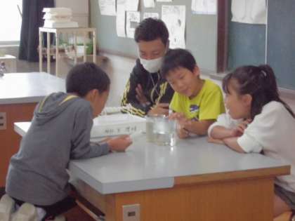 4年生の子どもたちは,今日も理科室で実験をしていました。