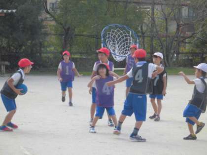 2年生は運動場で「パスゲーム」を楽しんでいました。