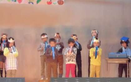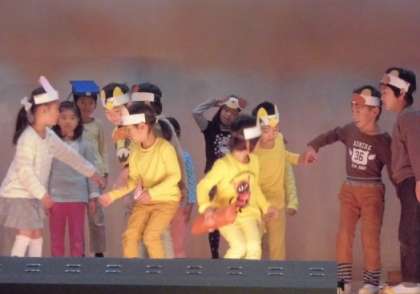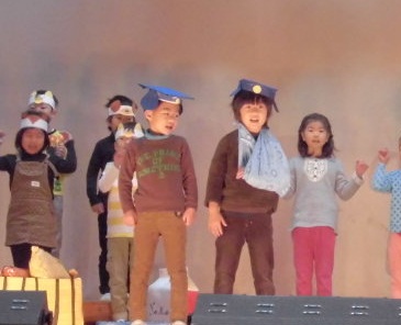 全員で役割を分担し,演じたり,歌ったり,合奏したりと盛り沢山な活動でお話をつないでいきました。