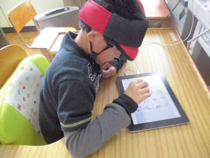 発達段階に応じたソフトがいろいろ搭載してあって,それを自分で選ん学習しています。機器を有効に活用した学習形態です。