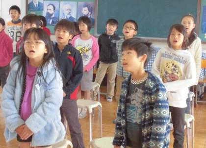 歌を歌うことが大好きな子どもたちです。音楽の時間だけでなく,朝の会でも声高らかに歌う声が3階からよく聞こえてきます。いい表情で歌っています。