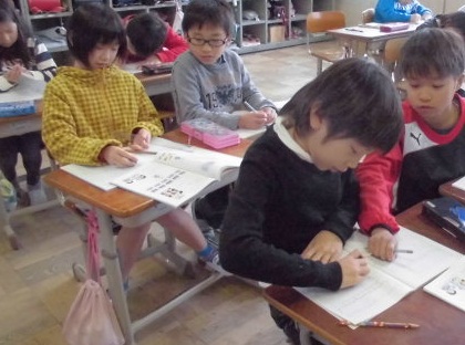 「べつべつに,いっしょに」の学習で,文章問題を読んでその解法を自分なりに考えて答えを求めていました。お隣のお友達と解き方を交流しています。ノートもとても丁寧に使えるようになってきましたね。