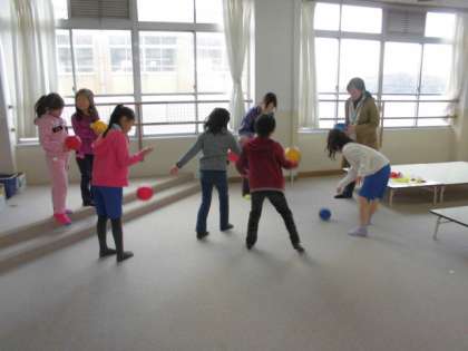 新年初めての今日は,まりつきをして,ついた数を英語で唱える遊びを楽しみました。
