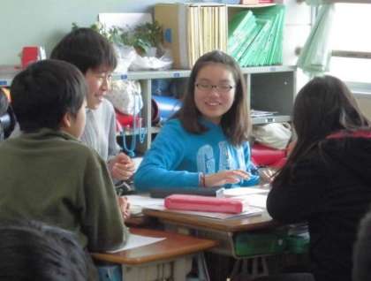 見学先で得た資料やデジカメで撮ってきた写真などを集めて,紙面作りやそのレイアウトを考えています。グループ協力しながら和やかに作業を進めていました。
