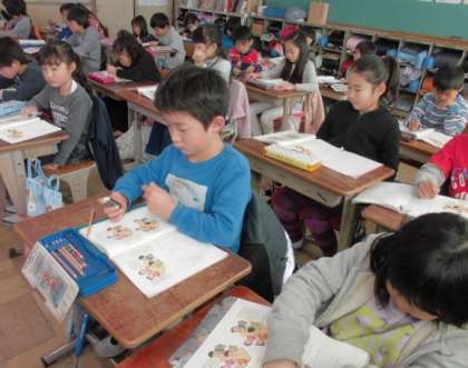 5年生1組の子どもたちは,教室で音楽の学習をしていました。