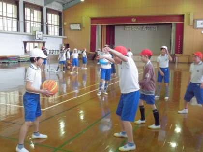 5年生は,体育館で『バスケットボール』のゲームを楽しんでいました。まだ,練習を始めたばかりですが,声を出し合って味方同士のパスを繋いでいました。チームワークが大切ですね。