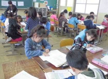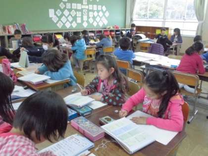 入室後,ランドセルをロッカーに入れると,子どもたちはまず宿題から取り掛かります。