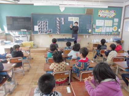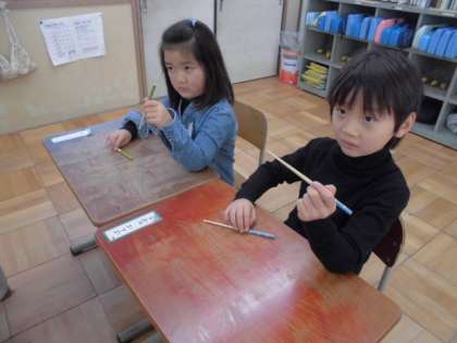 今日の1時間目には,1年生の教室を訪ね正しいお箸の持ち方を練習してもらいました。