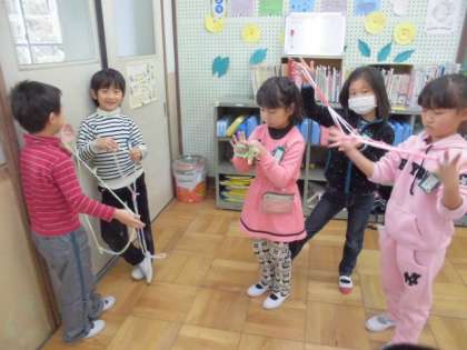 1年生の子どもたちは,教室で昔遊びを楽しんでいました。