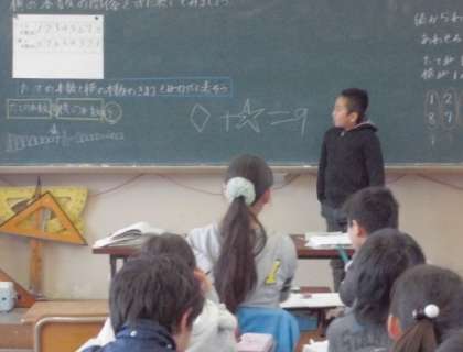 自分の解法を,自分の言葉でみんなに伝えあう集団学びの活動の様子です。