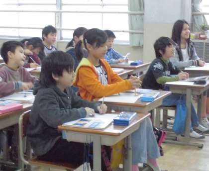 5年生は,算数『○や△を使った式』の学習をしていました。2つの数量の関係を○や△を使って式に表したり,変わり方を表に書いたりして調べていました。担任の質問にも和やかに応答し,しっかりと学んでいます。