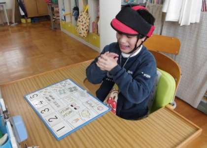 数字と絵カードを対応させて,正しくボードに並べています。全てのカードを,とても早く正しく並べることができることに感心しました。頑張っていますね。