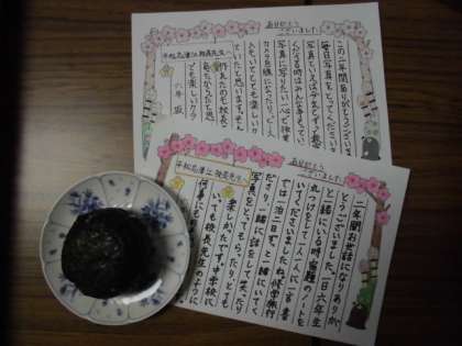 巣立つ日を目前に控えた6年生の子どもたちの心づくしを頂き,胸が熱くなりました。