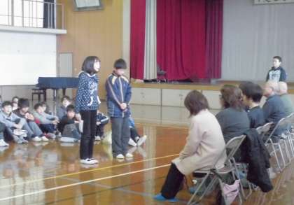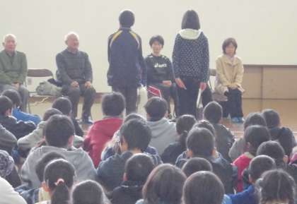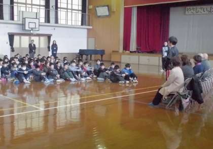 6年生児童がお礼の言葉をお伝えした後,ご参加いただいた囲碁・将棋・バレーボール・バスケットボール・卓球,各部の地域指導者の皆様からも,子どもたちに対して励ましのお言葉をいただきました。