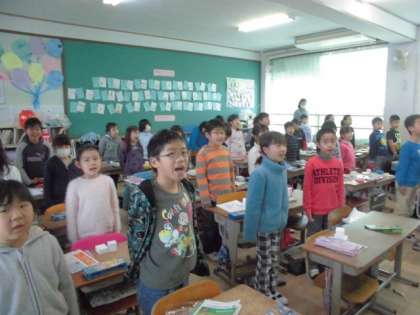 写真は,全員合格して,気持ちよく5時間目を終える挨拶をしているところです。満足げないい顔していますね。