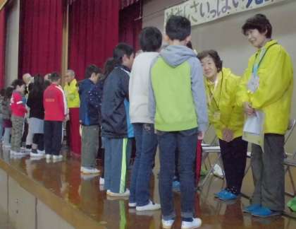 その後,お一人お一人に5年生が手紙を,4年生がお礼のメダルを,そして,3年生の児童が感謝状をお手渡ししました。