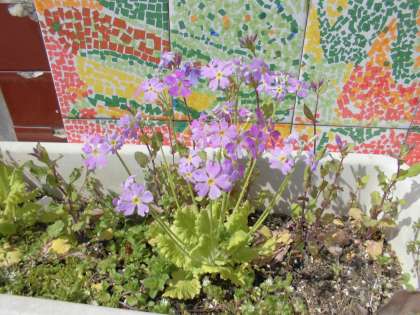 春の匂いのする明るい日差しをいっぱい浴びて,炊飯場の桜草の花びらもキラキラと輝いています。