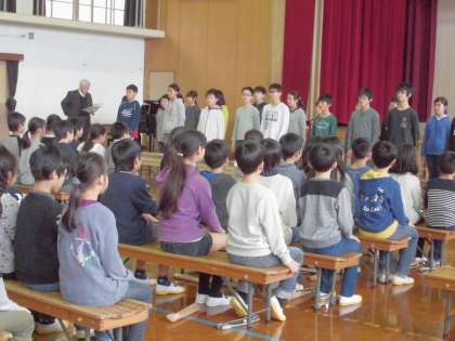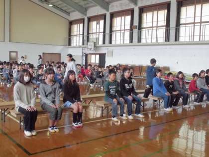 今日の5・6時間目,卒業する6年生と,送り出す4・5年生の全員そろっての最終の練習を行いました。