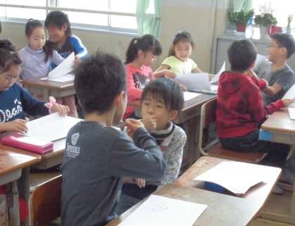 3年生の子どもたちは,国語の学習で書いた『紹介カード』を互いに読み合って,評価し合っていました。