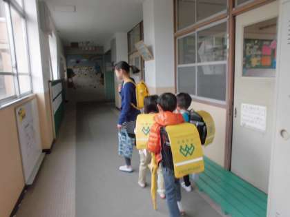 「かさ持った?」「みんないる?」と,やさしく引率してくれる高学年のお兄さんお姉さんの姿に,1・2年生の子どもたちも安心し,笑顔でお行儀よくついていきました。