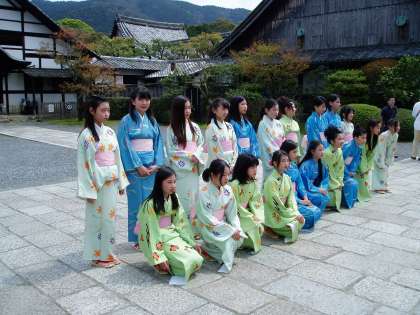 昨日【4月12日(日)】に行われた『豊太閤観桜行列』のアシスタントとして北醍醐小学校の子どもたち(2名)が,行列に加わりました。当日は,着付けやお化粧をしていただき,多くの観光客に注目される中,やや緊張気味に役目を果たすことができました。