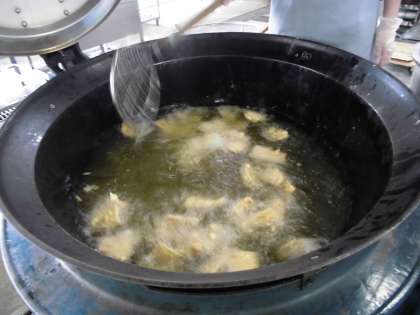 今日のさばのたつたあげは,しょうがと酒としょうゆで下味をつけ,小麦粉と片栗粉をつけてあげました。