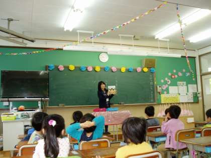 北醍醐小学校では,以前から『子うま文庫』さんのご支援で読み聞かせの会を開いていただいています。今日は今年度最初の読み聞かせが,低学年で行われました。1年生は,「しげちゃん」という絵本を読んでいただきました。子どもたちは,読み聞かせが始まるとお話に集中し,絵本の内容を楽しんでいる様子でした。次回は,どんな本を読んでいただけるのか,楽しみですね。ありがとうございました。