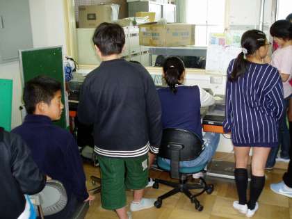 今日の中間休みを利用して,放送委員会の子どもたちが放送設備の使い方を練習していました。初めて操作する子どもたちもいて,何度も確かめをしながら本番の放送に備えています。今週は練習期間ということなので,しっかりとマスターしていきましょう。