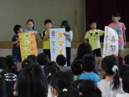 また,北醍醐小学校では,『互いに認め合い,人間として尊重し合う態度をはぐくむ』ため,毎月の朝会で各委員会が担当し「人を理解すること」と「人を大事にする行動」について取り組んでいます。