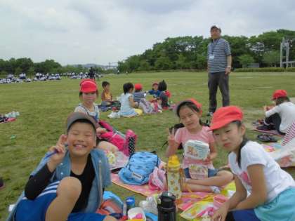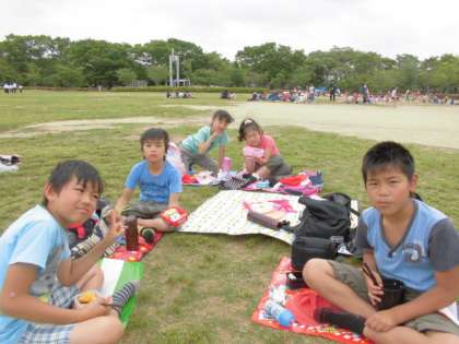 水族館を楽しく見て回った後は,芝生の上で日光を感じながら,お弁当を食べました。お家で朝早くから用意していただいたお弁当を,友達と一緒に味わうのは格別です!!笑顔,笑顔の子どもたちの昼食時間でした^^V