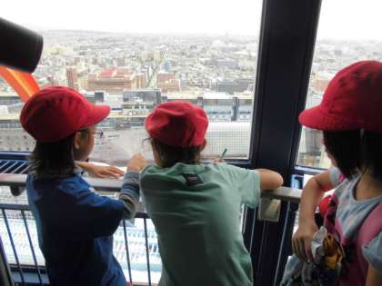 展望台から見る京都市の街並みに歓声を上げる子どもたちでした!!