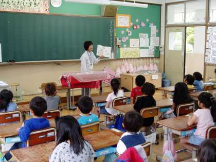 今朝は,低学年の各教室で読み聞かせをしていただきました。読み聞かせが始まると,子どもたちは,絵本の世界に入り込んでいる様子でした。