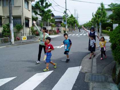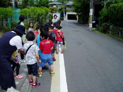1年生は,生活科の学習で町探検に出かけました。先日の交通安全教室で教えていただいた路側帯のことや横断歩道の渡り方などを復習しながら京道公園を目指しました。途中,交差点にある点字ブロックの役割なども学習しながら町の様子を勉強しています。