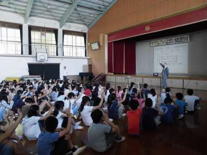 6月の朝会で,城野校長先生から学校教育目標の「やさしく かしこく たくましく」についてお話がありました。