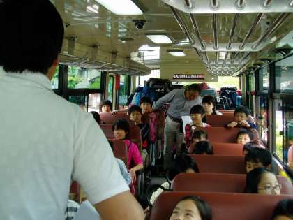 バスは予定通りの時刻に出発し,宝ヶ池でトイレ休憩をとりました。その後は,渋滞もなく順調にバスは走り,予定よりも早く到着しました。みんな元気です。