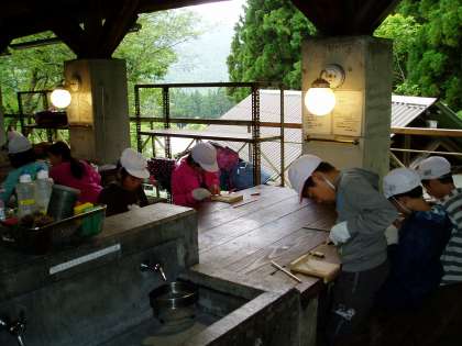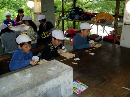 午後から,竹箸づくりをしました。普段あまり使わないナイフを手にして,竹の角を削りながら,丸みをつけていきます。