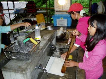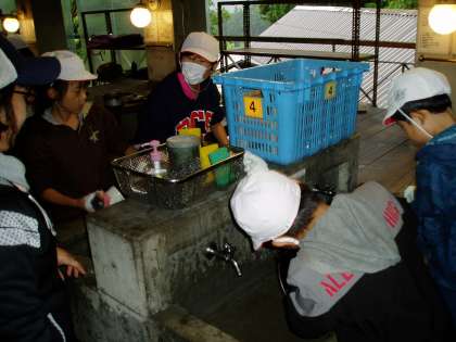 まずは,貸していただく器具や食器を洗っていきます。グループで協力しながら手際よく準備ができました。