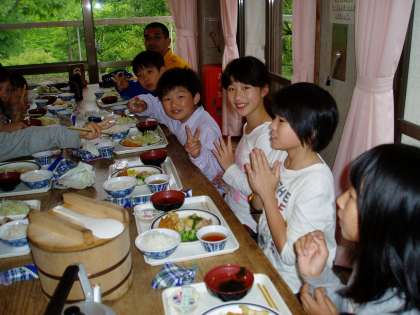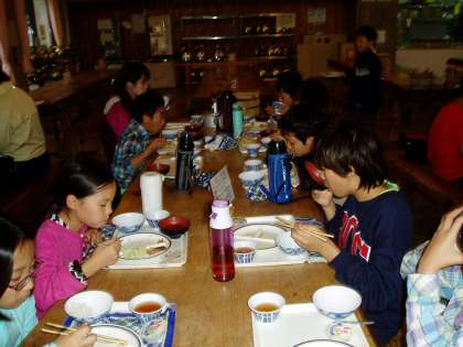 2日目の夕食の様子です。山の家で初めていただくバイキングの食事です。子どもたちは,久しぶりに,作っていただいた食事に有難さを感じているようでした。