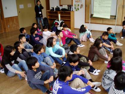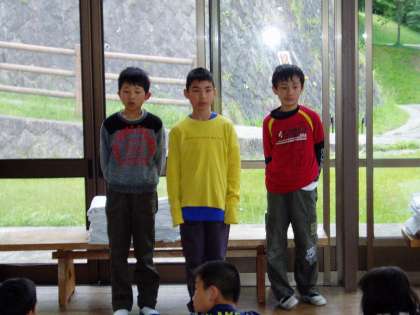 いよいよ最終日(4日目の朝)です。北醍醐小学校だけで「朝のつどい」を行いました。子どもたちは,しっかりと睡眠時間をとり全員元気です。
