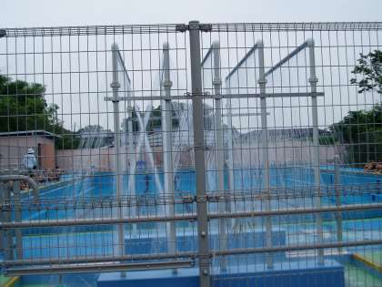 今日から低水位での水慣れが始まりました。特に1年生は初めての水泳学習です。学校のプールは,どれぐらいの大きさや深さなのかを知り,低い水位で水に慣れていきます。初日の今日は,いろいろな決まりを覚えたり,水の中を歩いたりしました。