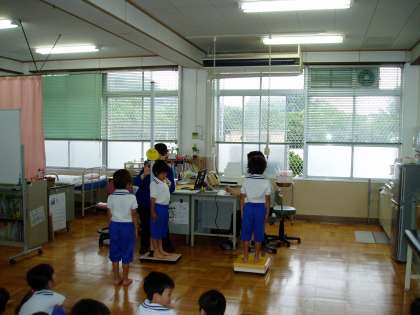 1年生は2度目の身体計測を受けました。まずは,暑くなってくると欲しくなるジュースなどの飲み物についての勉強をしました。