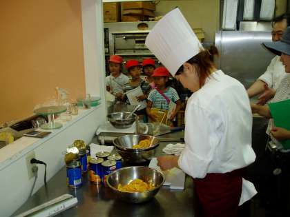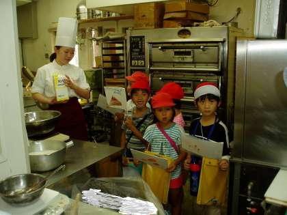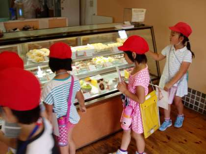 2年生の子どもたちは,校区内のお気に入りの場所をそれぞれが選び,探検に出かけています。写真は,校区内にあるケーキ屋さんを訪問しているところです。